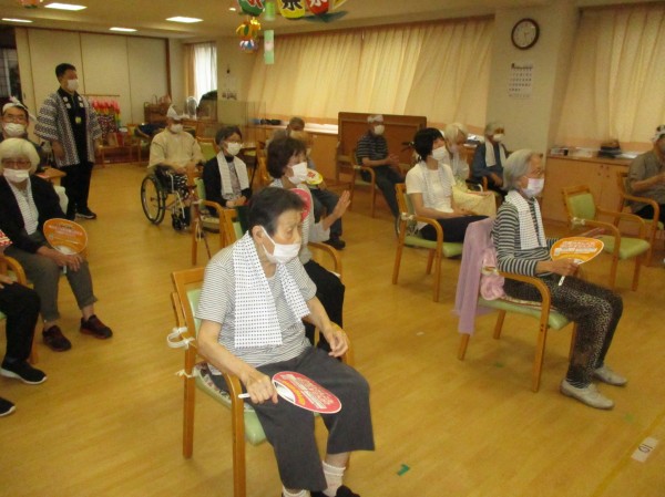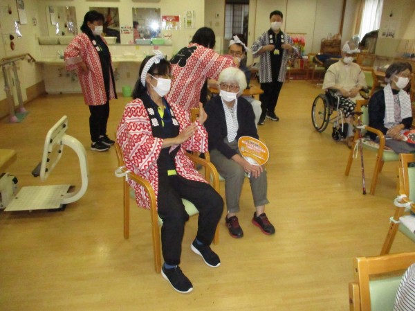 大東京音頭や東京音頭に合わせ椅子に座りながら踊りました。音楽に合わせ楽しく体を動かしました。最高!!!
