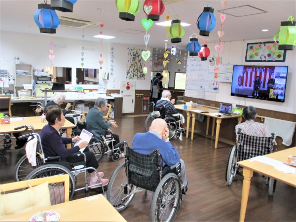2階・3階・4階同時開催で入居者様42名職員7名合計49名参加です。