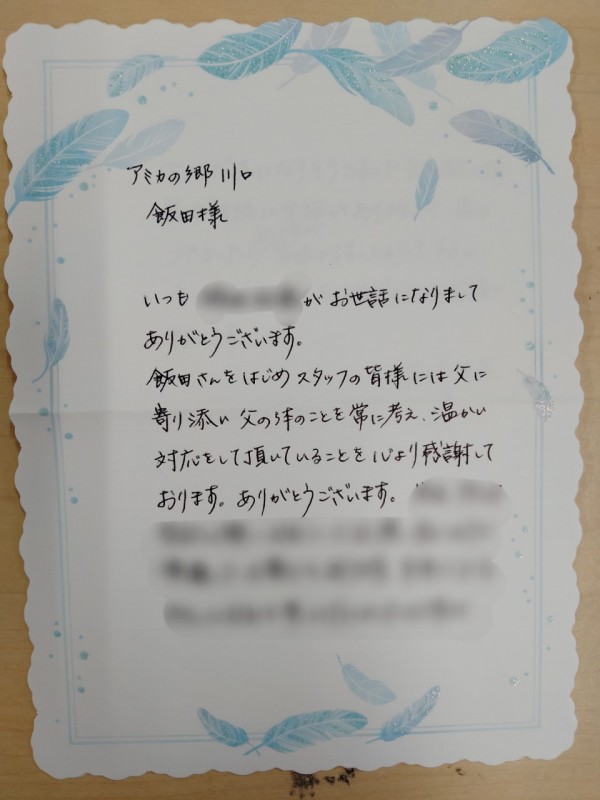 ご家族様より感謝のお手紙を頂戴しました。