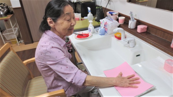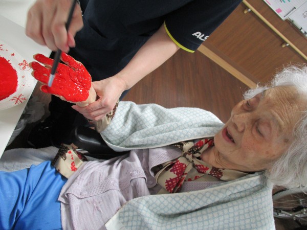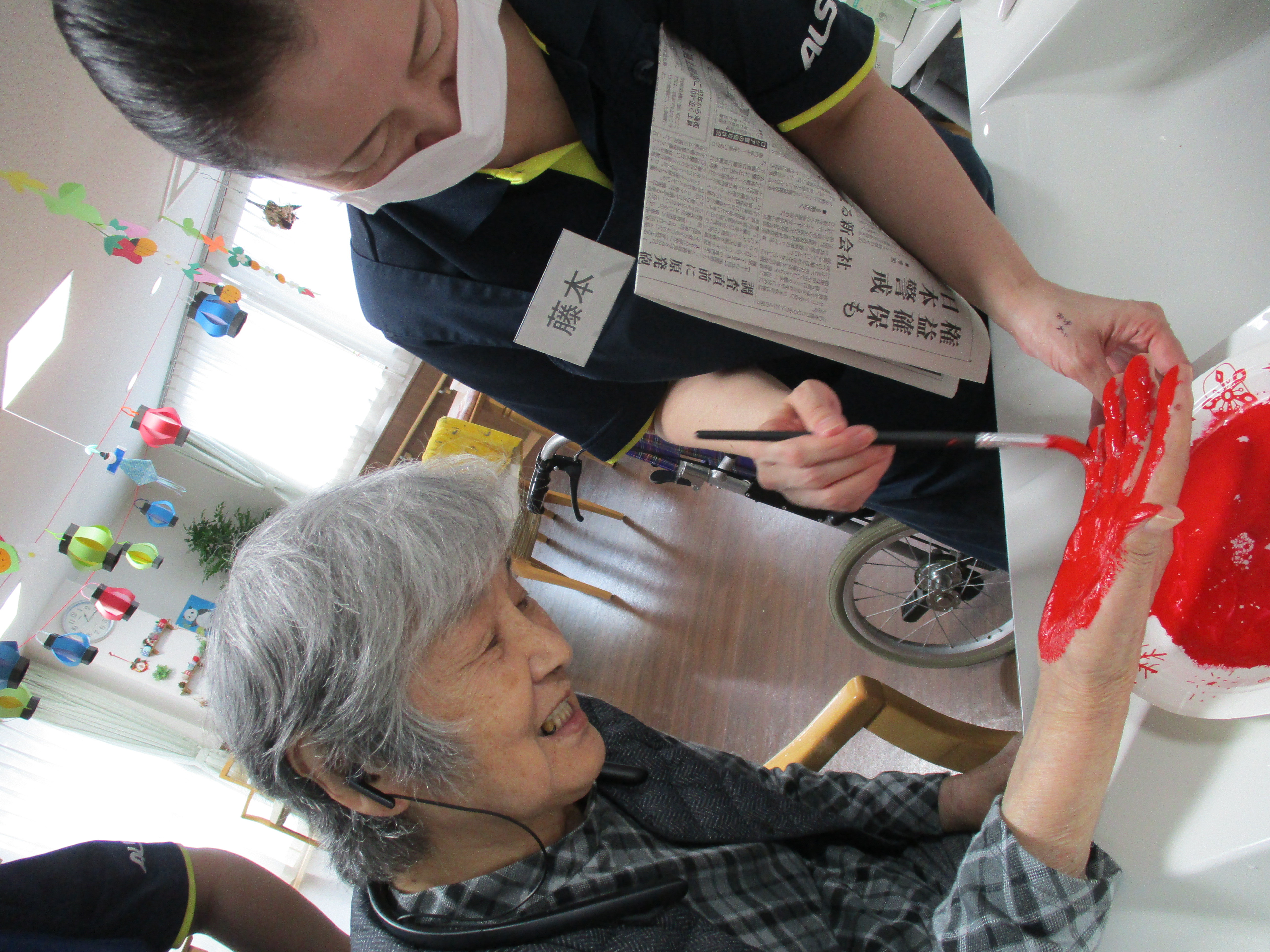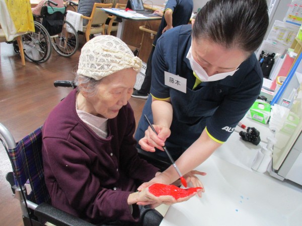 入居者の皆様も職員達も童心に帰って、賑やかで楽しい手形作りとなりました。