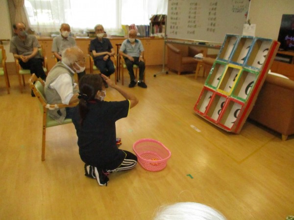 こんにちは、デイサービスセンター遊・西東京です。今日の運動レクレーションは『ストラックアウト』です。