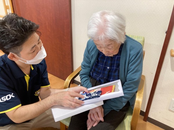 百寿のお祝いとして『内閣総理大臣からの賞状』『銀杯』横浜市から『絵手ぬぐい』『敬老のお手紙』