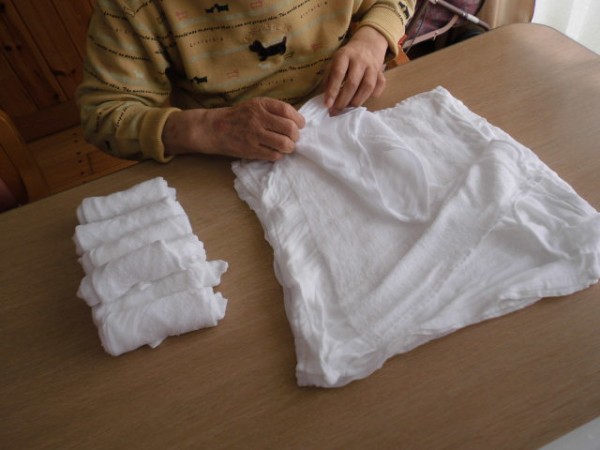 手の運動も兼ねて、入居者様の起床時の顔拭きや、