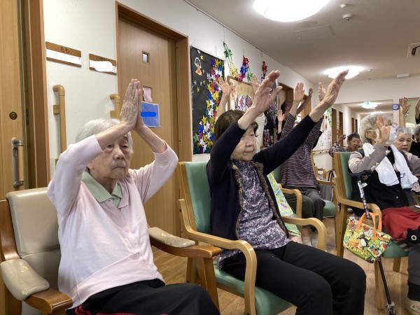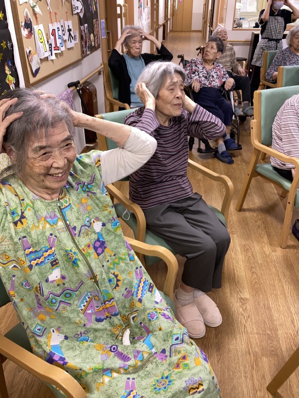 手を頭にのせたり手を上げたりと真剣ながら楽しまれていました(#^.^#)