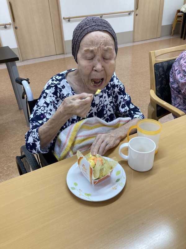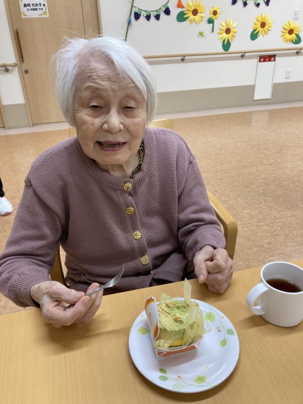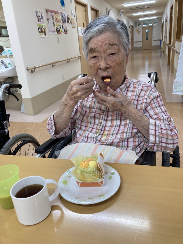 9月15日(木)、当施設に入っている厨房の「日清医療食品」さんの創立50周年で、おやつにケーキが出ました。