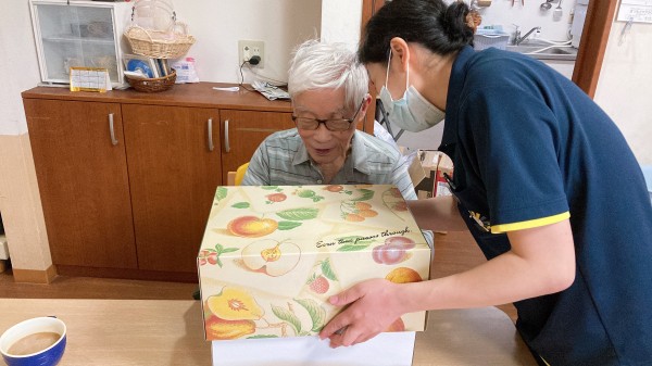 1つ1つ果物を手に取り、とても喜ばれていました。