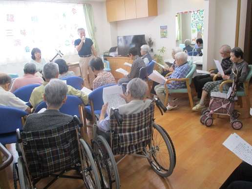 オーナー友人が、歌や演奏を行い、東京音頭等リズムに合わせて入居者様は楽しんでいました。