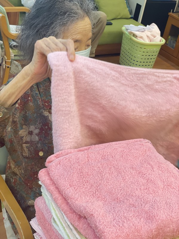 デイサロンかたくりの里六郷では、みなさま到着後少し落ち着いたころに、ど~~~~~~~んとテーブルに洗濯物が積まれます( *´艸`)