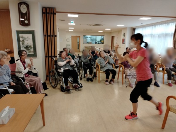 先生の元気あふれる声とご入居者様の笑い声が館内に響き渡ります♪