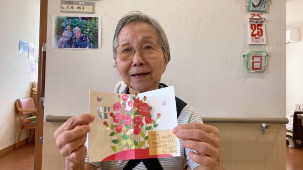 ご家族様からの誕生日カードを受け取り、とても喜ばれていました(*^-^*)