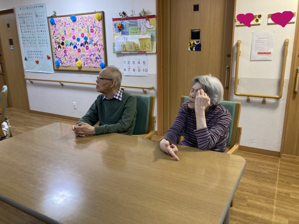 他の入居者様とテレビ番組を見ながらお喋りされていました♪ 今はテレビ画面にくぎ付け?