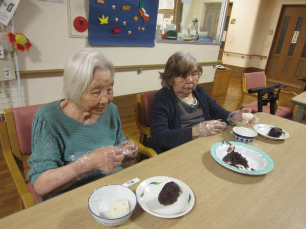 とても楽しまれ、「美味しいおはぎを作りましょう」とご利用者様同士で話し合いながら