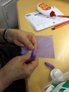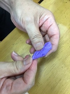 リンドウの花の芯はティッシュペーパーを丸めて、そしてお花紙で包みます。