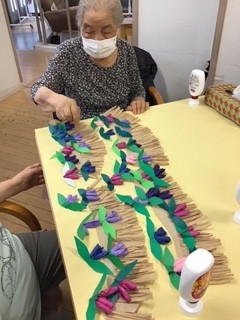 デイ大泉では「リンドウとススキの丘」をイメージした壁画を皆様と作成しました❣