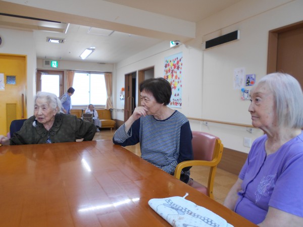 日常の様子その1です。桜フロアと桃フロアのご利用者様がお話されていました!