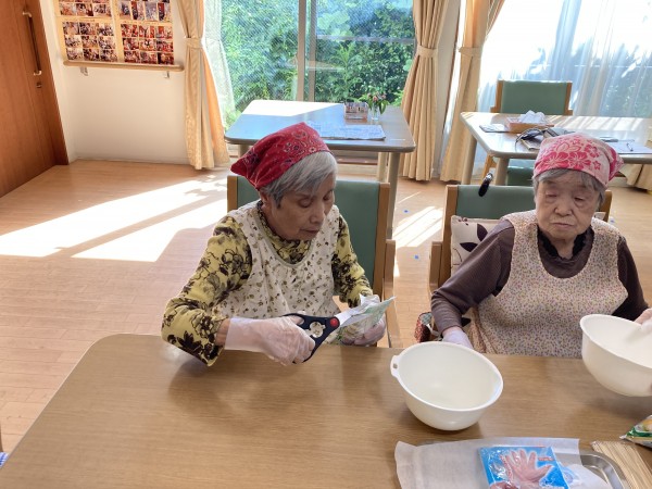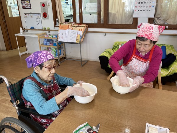 今回は皆様とおやつレクにて「豆腐入りお月見団子」を作りましたので、