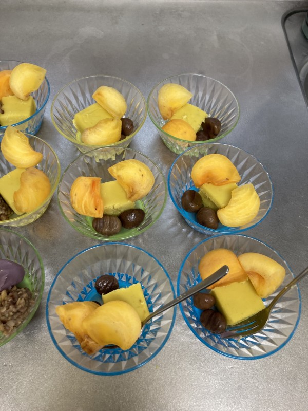 さて、今回は「秋」をテーマに皆様に秋の味覚おやつをご提供させていただきました。