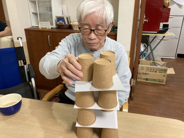 紙コップでジェンガです(笑)
