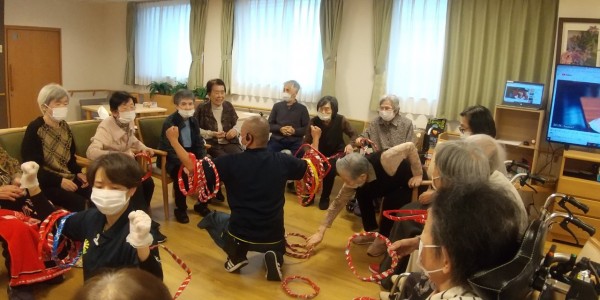 職員が輪投げの棒になり、入居者様に輪を投げて頂きました( *´艸`)