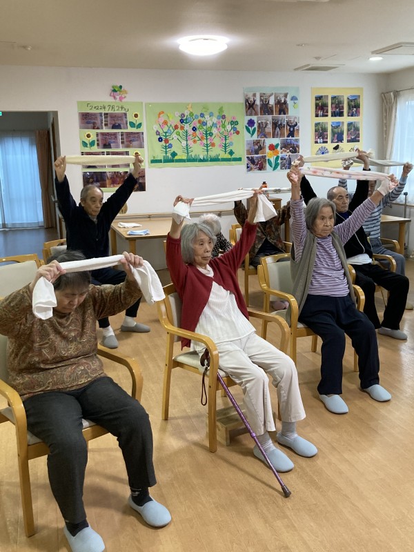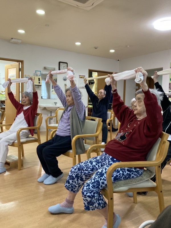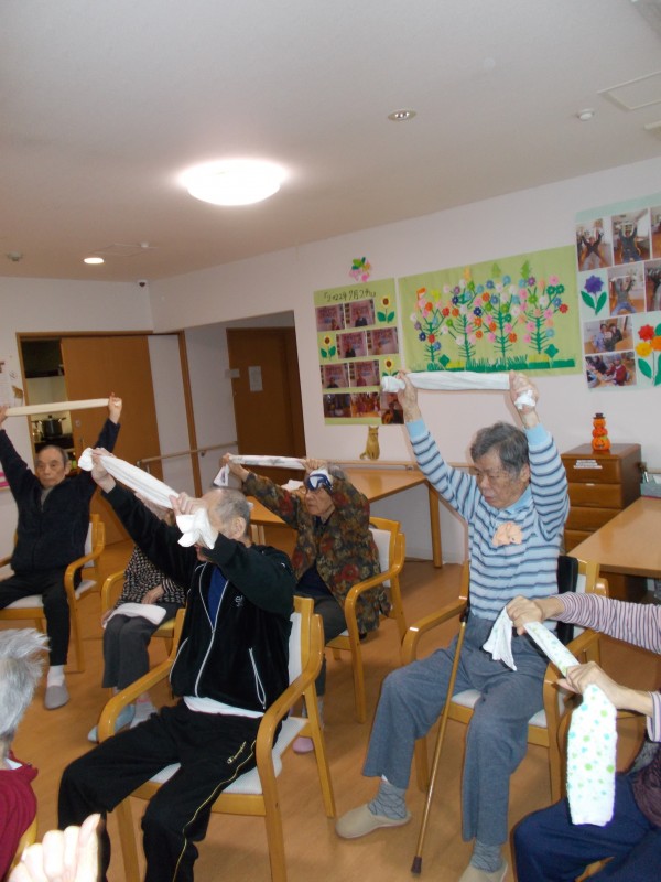 久しぶりの運動指導員岡庭先生とのタオル体操です。