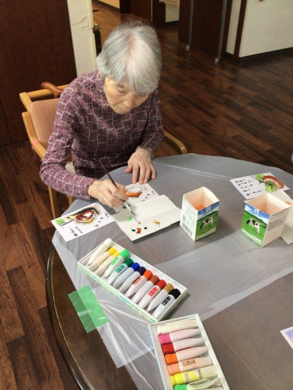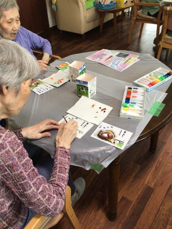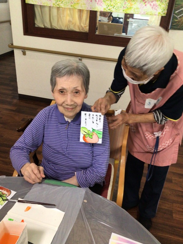 今回は絵具を使用して絵手紙をみなさんと制作しました♪