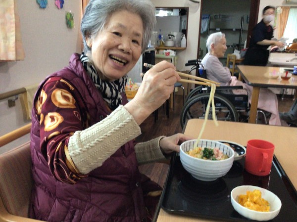 うどんのほかにお稲荷さんもありました。皆さん”ズルー、ズルルー”と美味しそうにうどんを啜っていました!!