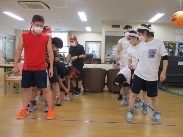 次に行ったのが、職員による新競技!!「ムカデ競走」です!