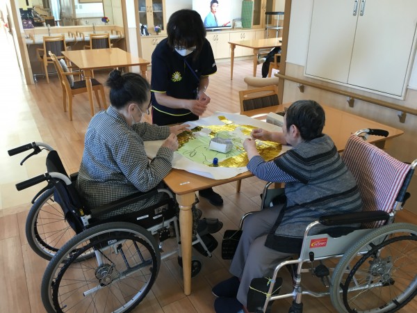 職員も入り、皆様で小さくちぎった折り紙を