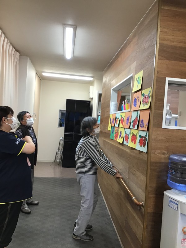 壁に貼った作品を通りがかりに眺めては