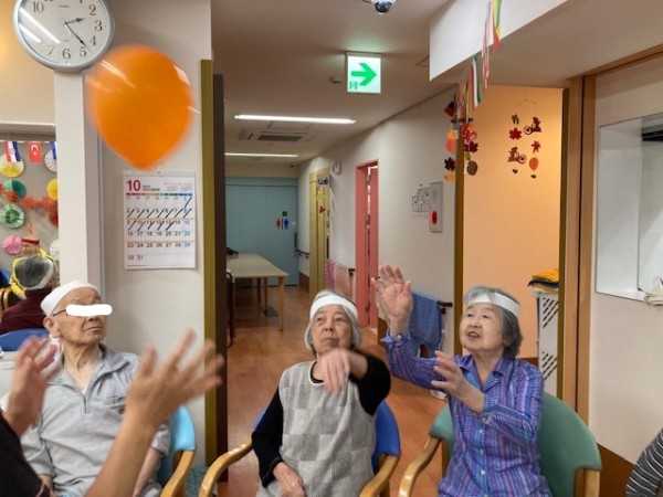 皆さんで玉や輪っか、風船を膨らまして準備したもので、力いっぱい楽しみました。