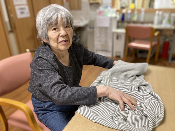 今回皆さんと一緒に洗濯物を畳んで頂きました。
