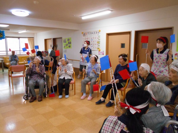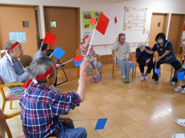 赤あげて~、青さげて~と色々な指示がありましたが、皆さん先生の指示を真剣に、冷静に聞き取って旗を上げたり下げたりしていました(^^)/