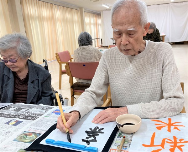 では本日のブログは皆様が毎月楽しみにされている書道クラブです“φ(`・ω´・)