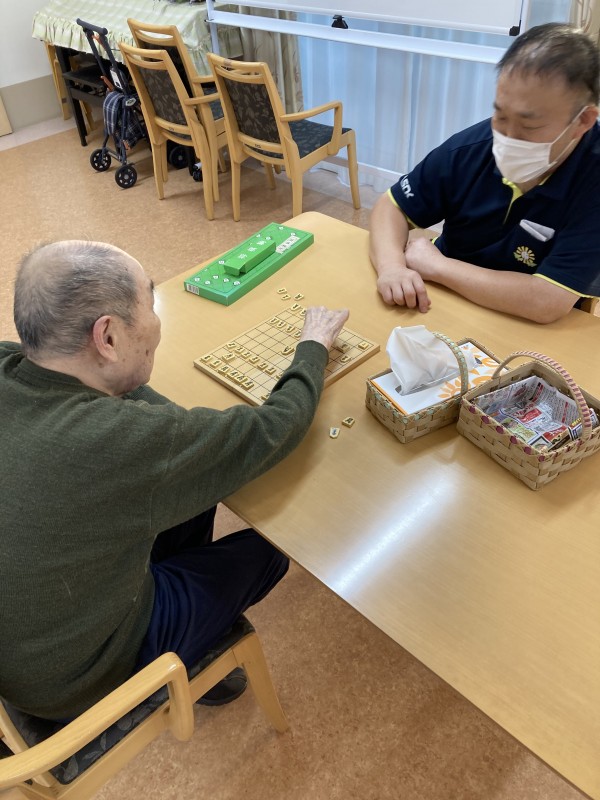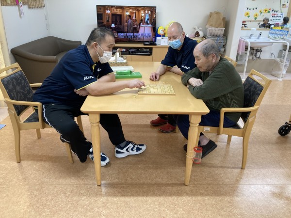 職員と利用者様で、将棋を指しています(*^-^*)