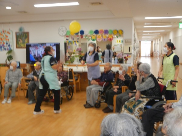 輪の中の職員と外の職員も協力して、何とか風船を落とさずに繋ぎました。