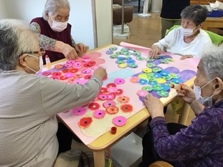 今日は皆さんで菊の屏風つくりをしました。