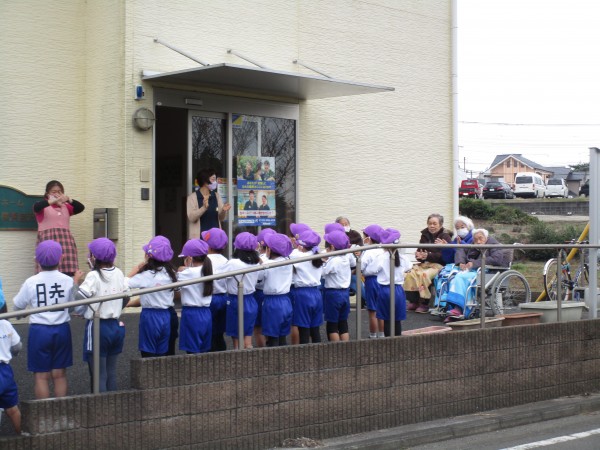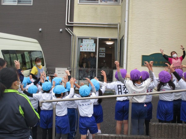 コロナ以前は園児さん達はホームの中を見学したり、ご利用者様と一緒に遊んだりしていたのですが、今年もそれが