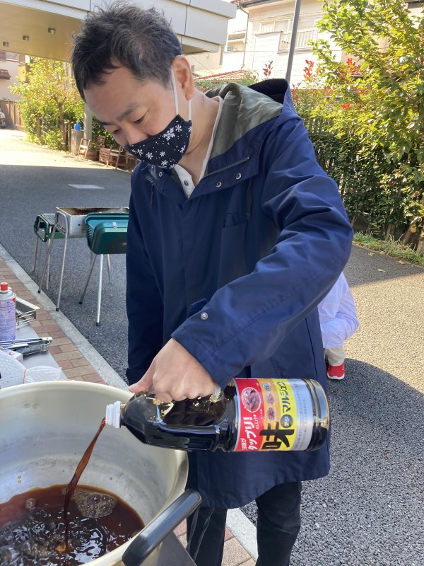 芋煮は、すこや家佐知川の荒木ホーム長が作りに来てくれました!