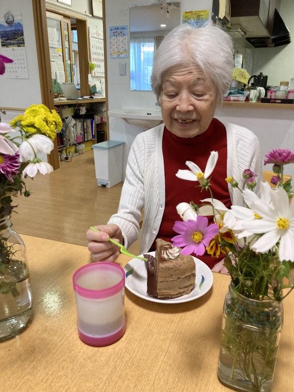 先日、お誕生日の入居者様のご家族からケーキの差し入れがありました。