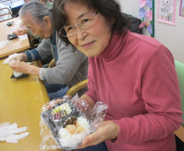 皆様、お好きな具材を選んで、ご自分のおにぎりを握りました!!(#^.^#)