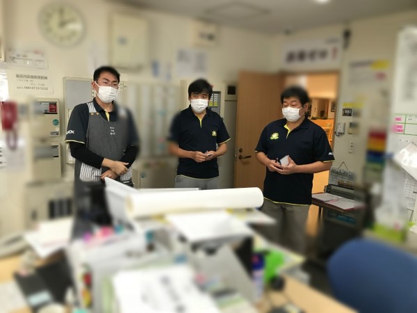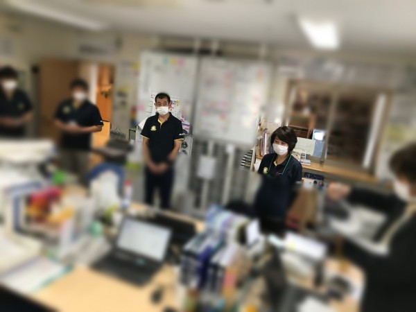 訓練後、事務所内で振り返りを行いました。訓練中、インカムの電池切れ等により、一時的に職員同士の連絡が途絶える場面が見られました。