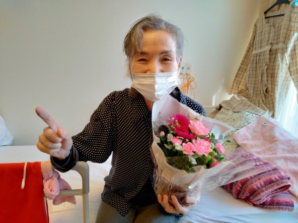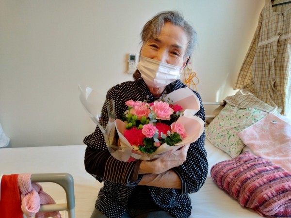 スタッフ:「T子さーん・・大好きなおとうさん(ご主人様)から素敵なお花が届きましたよー」