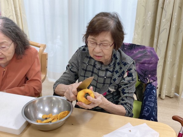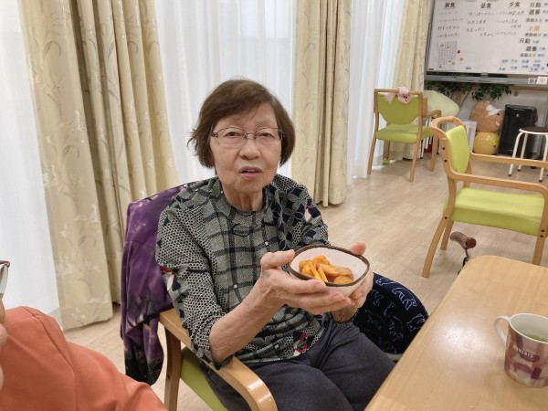 ご入居者様にも柿を向くのをお手伝いいただき、食べる前から賑やかな雰囲気(^^♪
