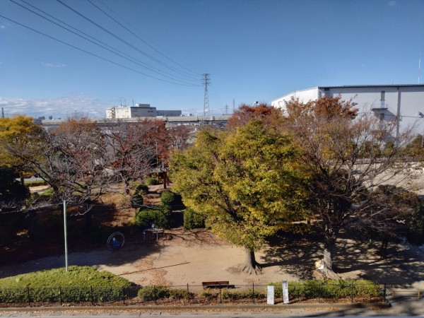 アミカの郷川口の建物の周りには、赤・黄・茶色の落ち葉がたくさん落ちていました。