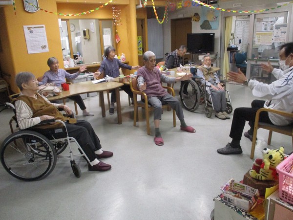 今回は午前中に行われた、トレーナーが来られての『いきいき体操』の様子を紹介します。