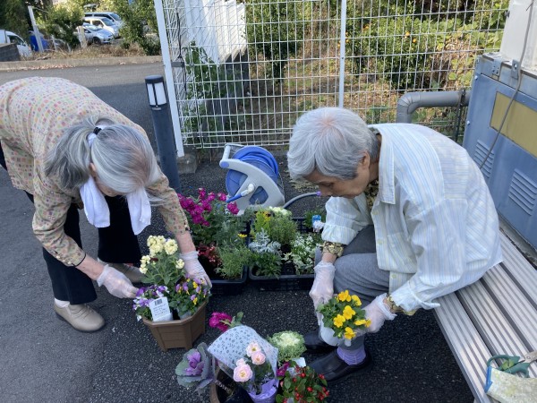 先日、スタッフと一緒に、お花が大好きなご利用者様お二人と