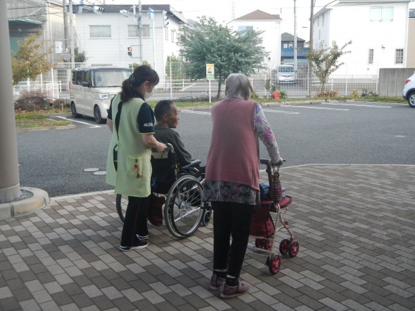 11月も暖かい日や寒い日が混在して、体調管理にも注意をはらっていますが、この日はふらっと外へ行きたいご要望もあり、駐車場に出てみました。