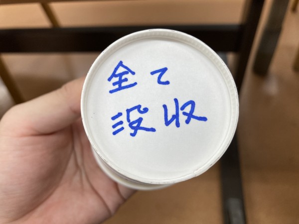 そのあと、今回ご用意した「運命BOX」という箱がありまして、その中から自由に一つ選んでもらい、カップの裏に、何かしらの結果が刻まれてます!プラスもあればマイナスも!なんと悪魔的ルール!!( ゚Д゚)