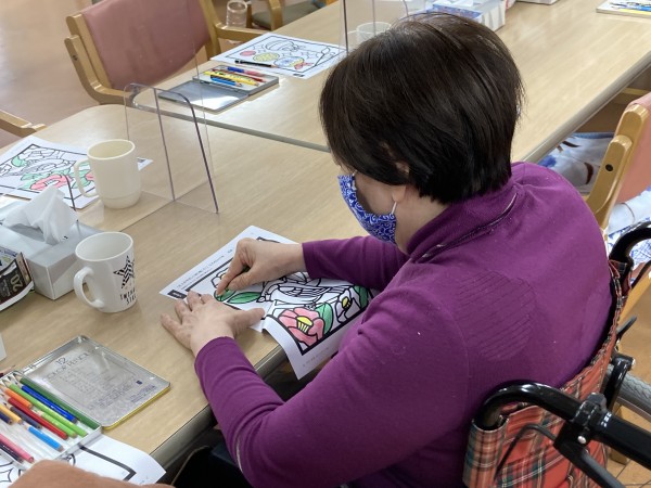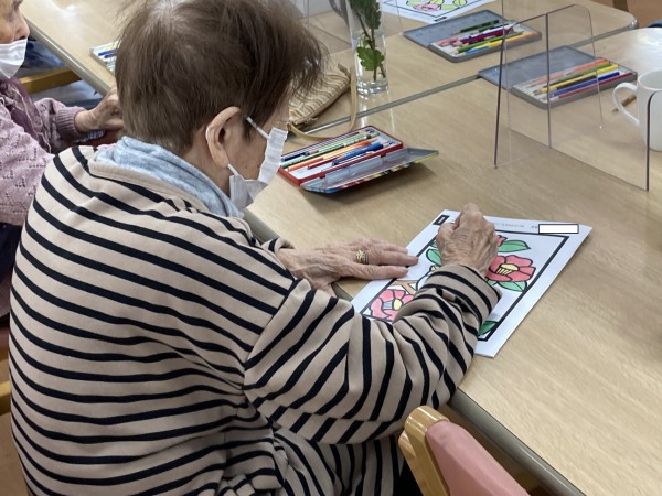 朝は塗り絵を楽しんでいます♪