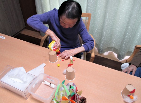 今は、入居者様と職員がXmas会で使う装飾物と備品類の制作をしています。